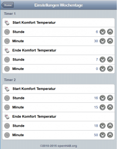Zusätzlich habe ich die Timer- und Temperatureinstellungen in meiner MySQL Datenbank gespeichert und OpenHAB so konfiguriert das beim Neustart die gespeicherten Werte wiederhergestellt werden.